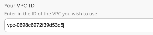 When enabled, you will need to enter the target VPC ID. This can be found in the AWS console, from the VPC console.