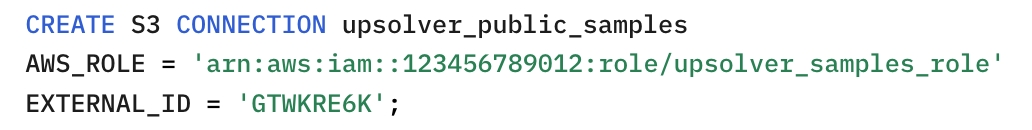 Now you are able to create an Upsolver connection using the role you created in Step 2 and the external id generated by Upsolver in the trusted entity JSON.