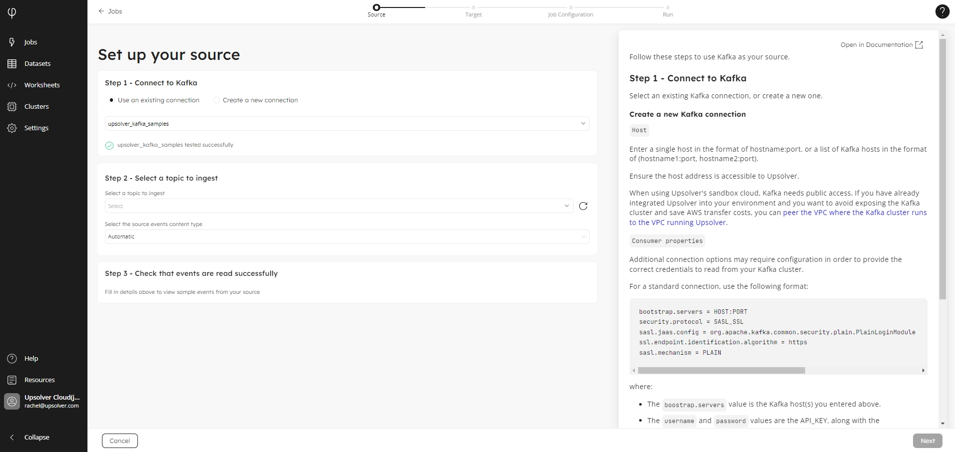 As soon as you select a topic, Upsolver will attempt to load a sample of the events.