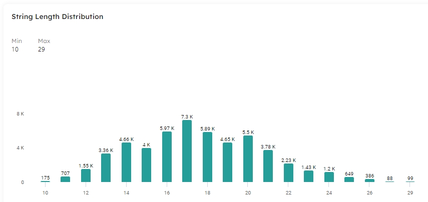 The chart instantly alerts us to any strings that may be too long or too short, indicating an an issue in our data.