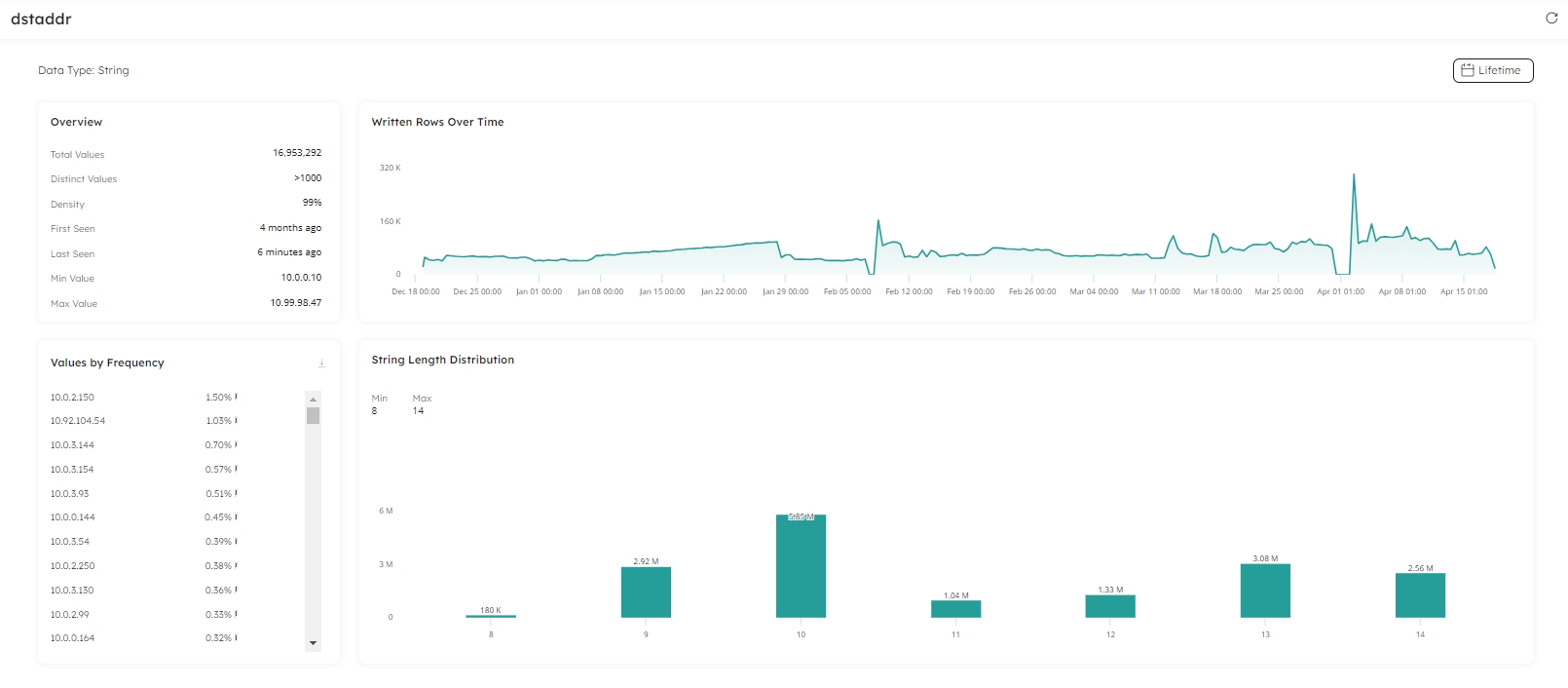 Instantly you can see the data within the dataset. Click on a column name to drill into the column data: