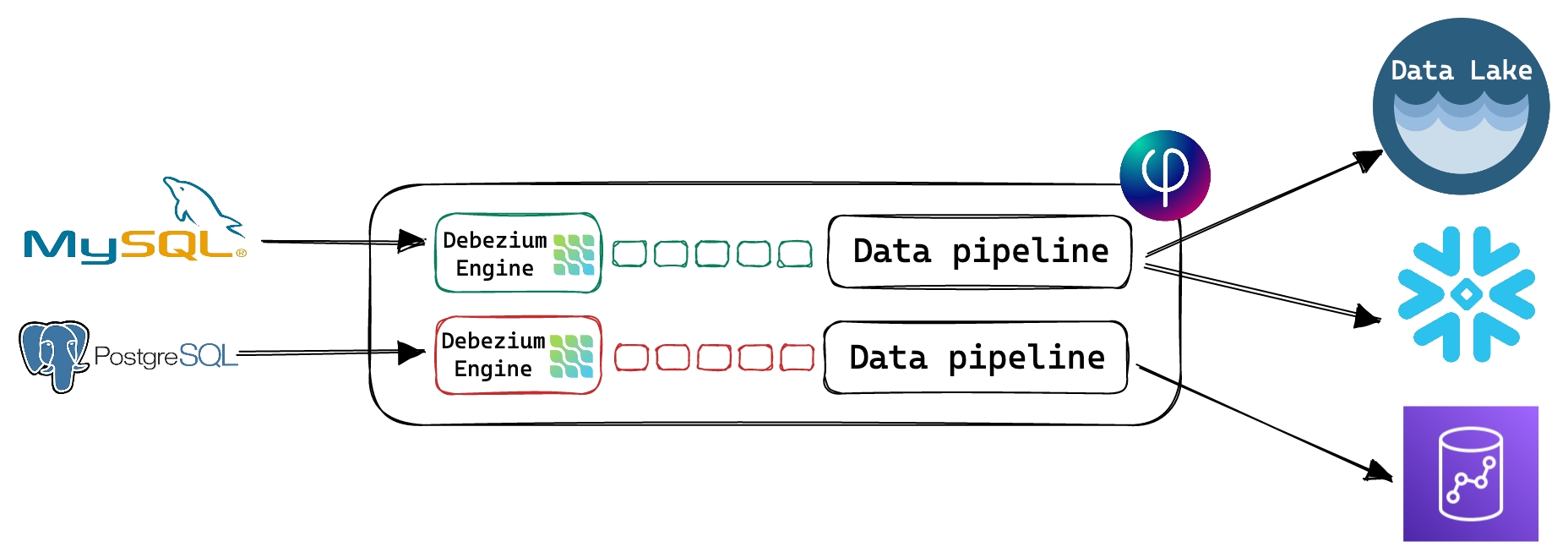 The following diagram illustrates how Upsolver embeds the Debezium Engine: