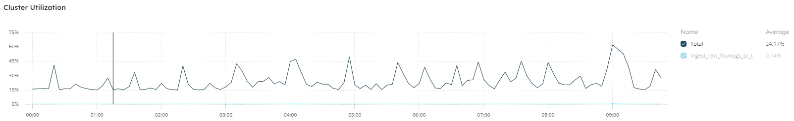 The CPU utilization of the cluster. The chart visualizes how much of the server's processing capacity is currently in use, and includes the current job: